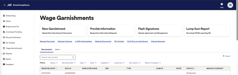 Starting May 9, you will be able to search and view garnishment documents based on how they were submitted to ADP, such as: